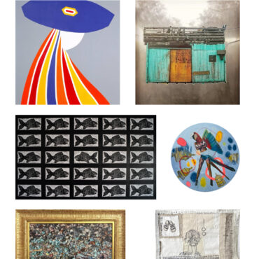 Western Fantasy Woodcut Prints Collage / Ouida Touchon / 24″ x 30″