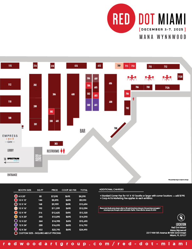 The result is a clean, curated environment where standout work gets noticed—and sold. If your work meets the standards of Red Dot Miami, we invite you to review the booth packages below and secure your place in one of the world’s most established art marketplaces.