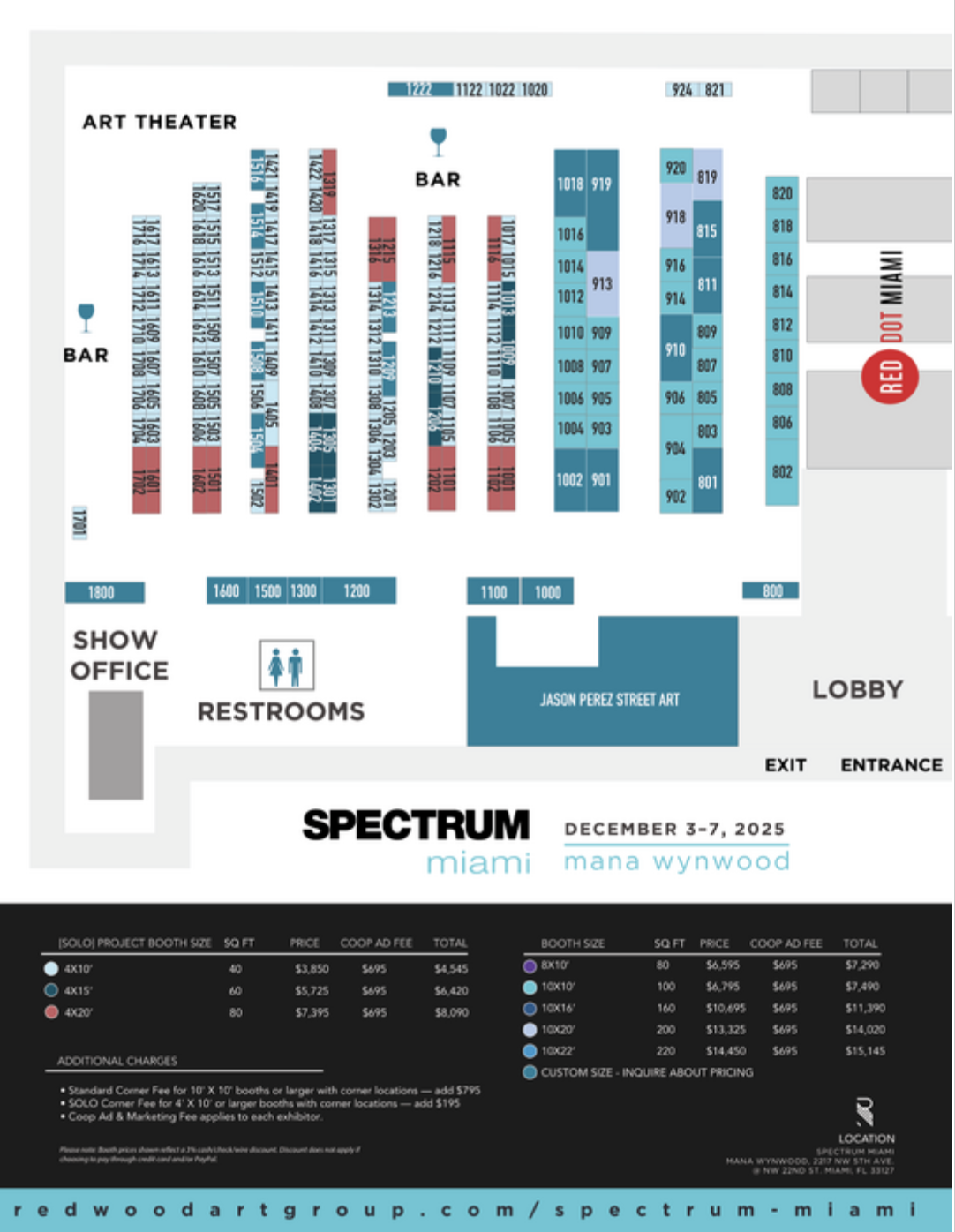 | Color | Booth Size | Square Feet | Price |
